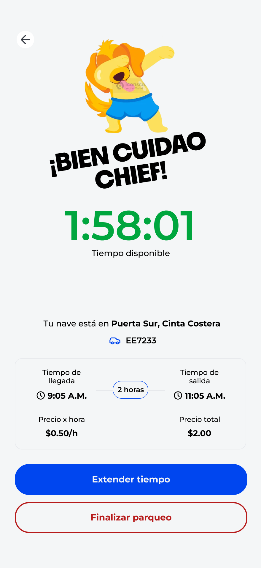 Siempre tendrás el control total de tu tiempo de parking. Podrás extenderlo cuando lo necesites o finalizarlo antes, así de simple.